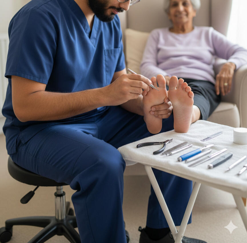 I provide professional, HCPC-registered treatment for all common foot conditions, bringing the clinic to your doorstep.Nail Care: Treatment for painful ingrown toenails, thick fungal nails, or nails damaged by trauma.Skin Health: Painless removal of stubborn corns and callus (hard skin), and effective verruca treatments.Medical Screenings: Full vascular (circulation) and neurological (sensation) assessments—essential for diabetic patients.Advanced Standards: Most NHS podiatry treatments available privately with no waiting list.